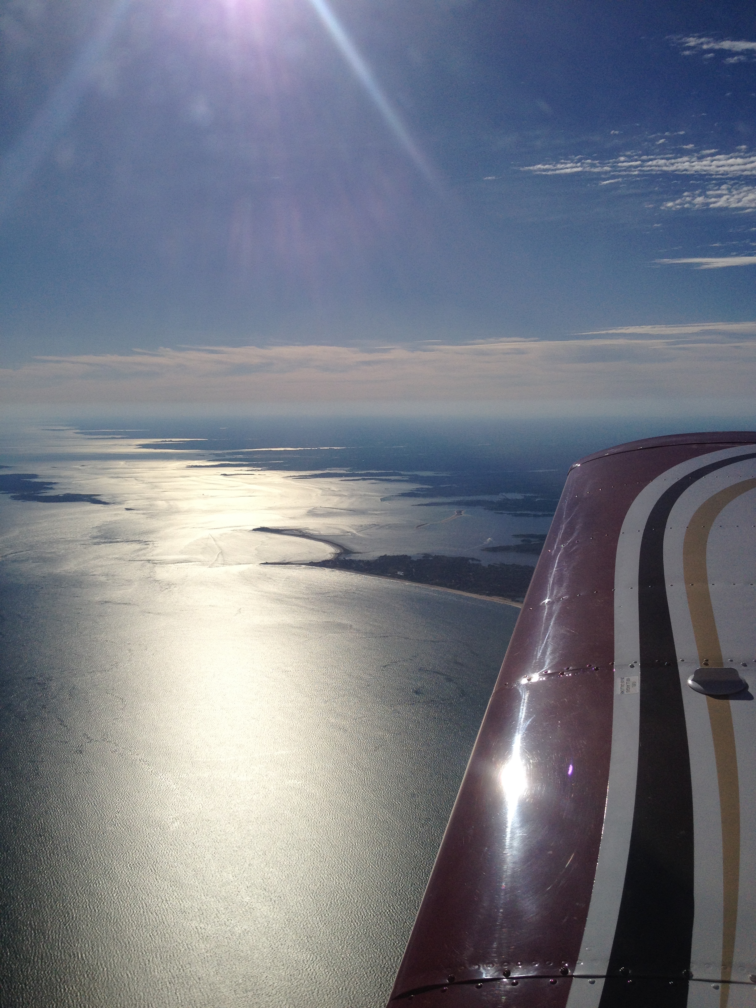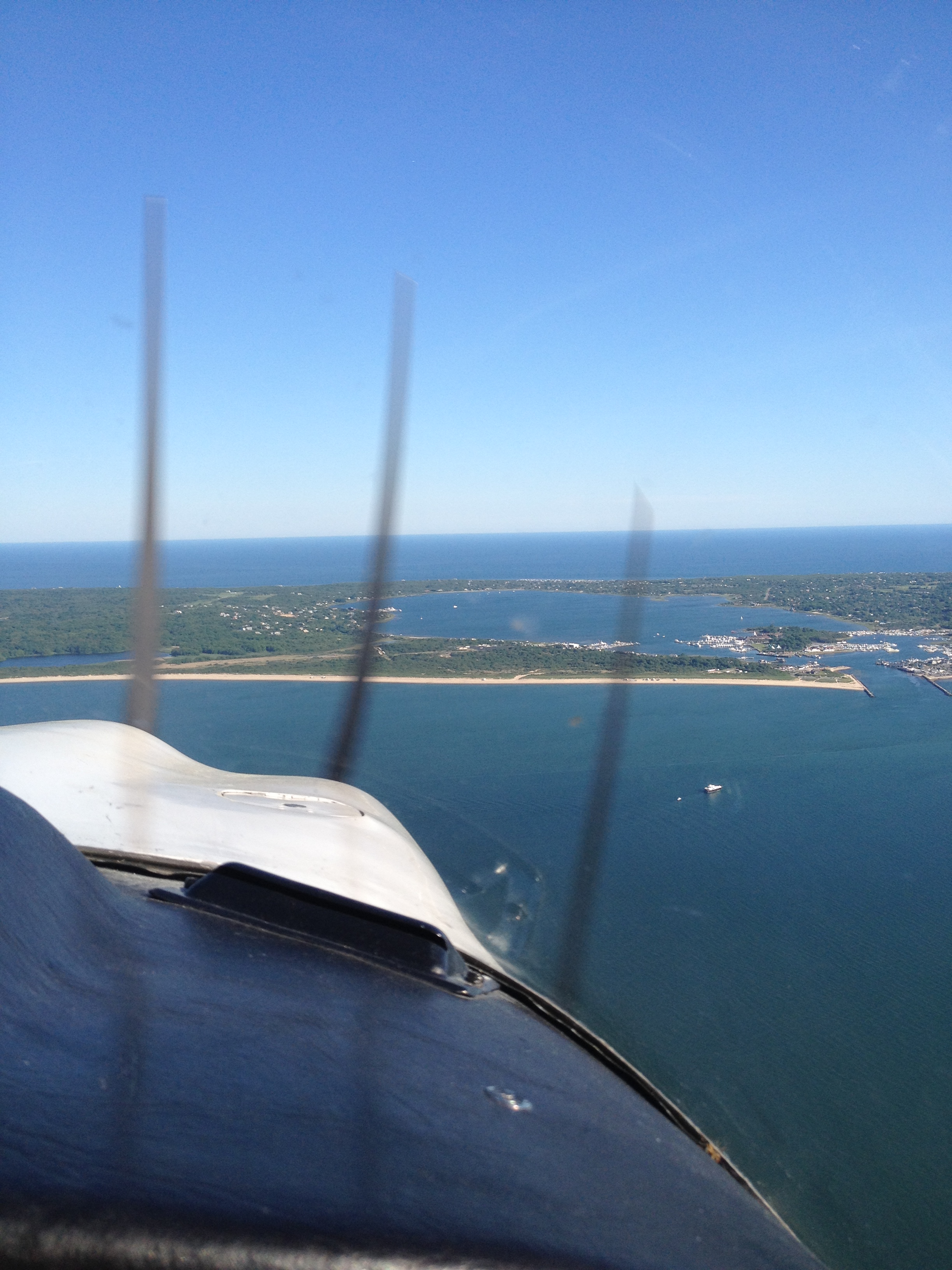 Pippa (Tom’s Piper Cherokee) and its crew took off at about 5pm with an expected flight time of 40 minutes or so. The flight smoothed out above the tree line almost instantly, and we were on our way! What a view we had, 10 miles and greater of visibility, not a cloud in the sky! We could not even get a word in to Providence Approach, as the skies were experiencing rush hour traffic taking advantage of first real summer night.
