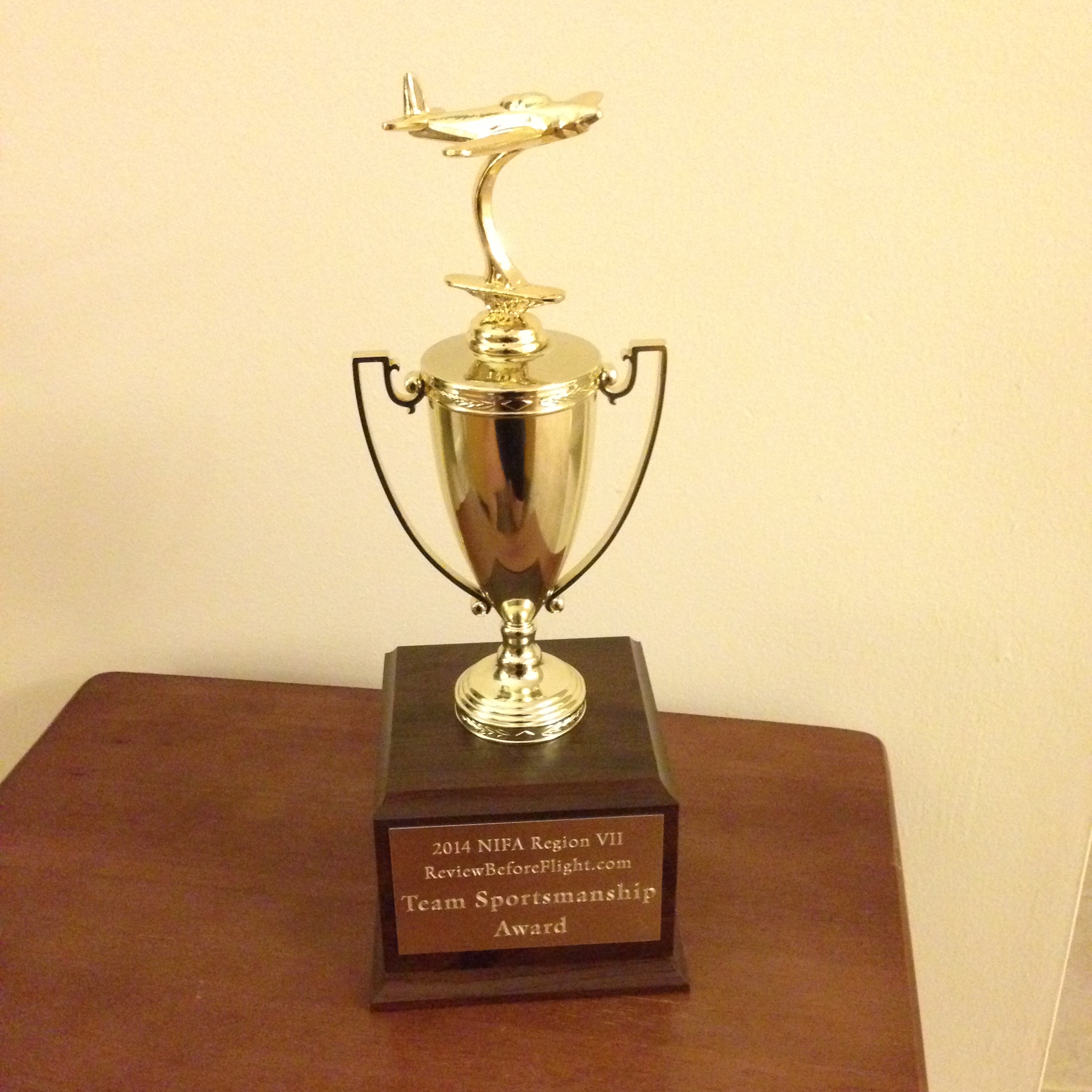 The new (1st generation) ReviewBeforeFlight Team Sportsmanship Award to be presented to the team with the best NIFA culture at the Region VII competition this fall!