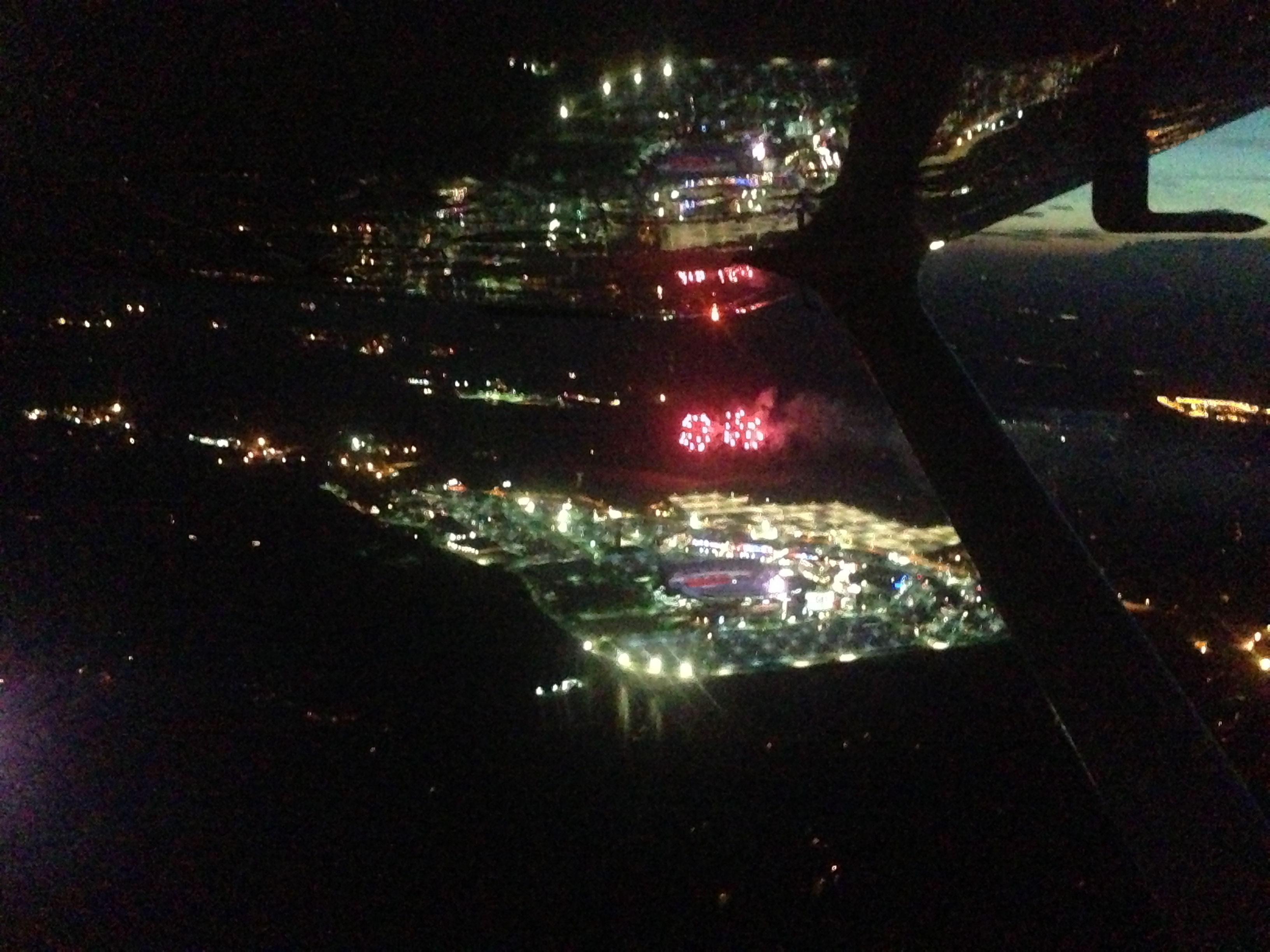 One of my favorite flights to make each year is to watch the 4th of July fireworks (3rd of July pictured here), but by the time the fireworks are over it’s night time and I need to have made sure before the 4th (or 3rd) I am night current so I can bring a friend along for the awesome experience of watching fireworks from above!