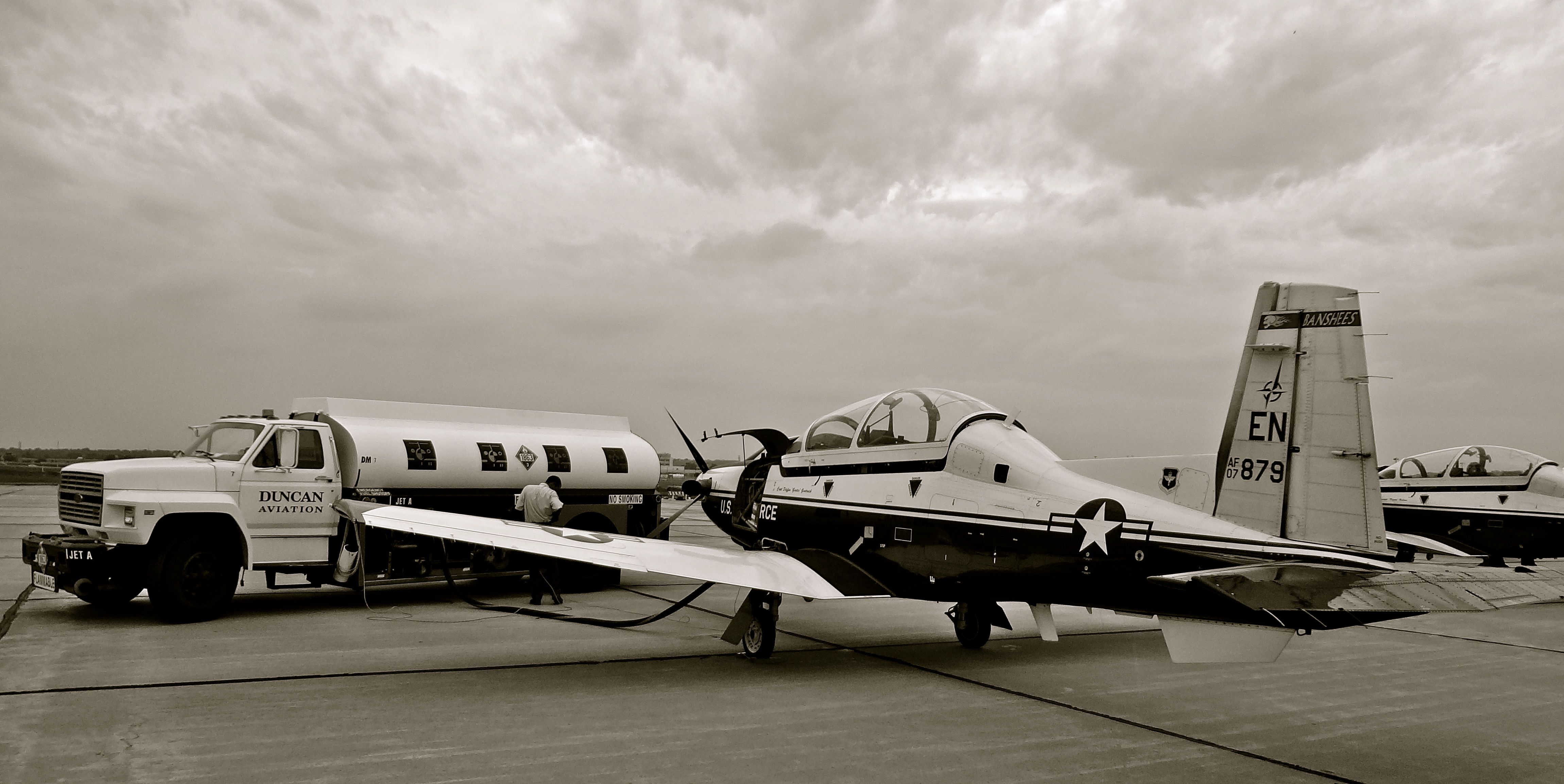 The first half of training is completed in the T-6 Texan II. It is a two seat tandem aircraft with a PT-6 turboprop producing 1100 SHP and capable of good aerobatics as well as cross country. The T-6 syllabus is broken down into several phases. The first, contact, is focused on learning the basics of take-offs, landings, engine out procedures, unusual attitudes, spins, and basic VFR navigation. The second phase; instruments, is as it sound. You learn how to plan and fly IFR. The simulators and instructors are second to none, and by the time I flew my first instrument sortie I felt well prepared.