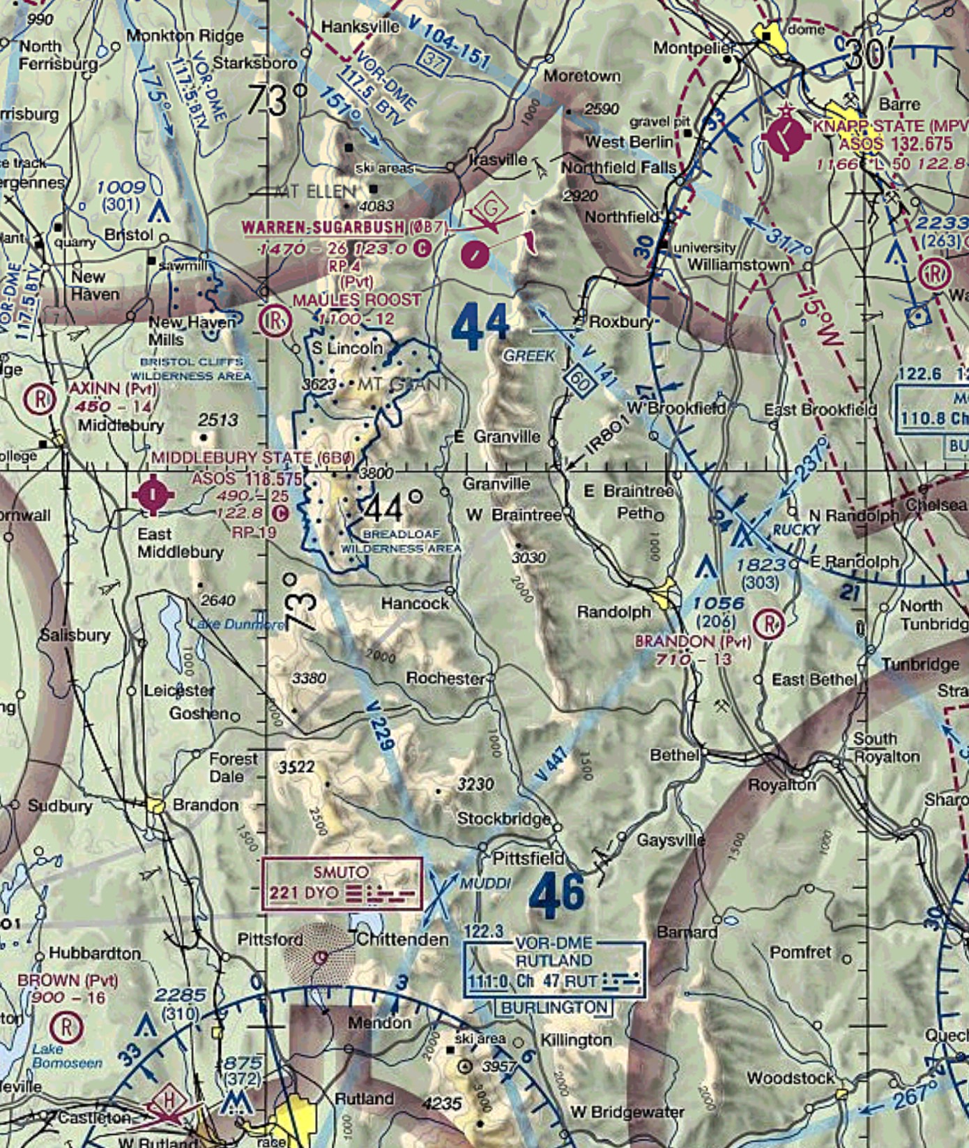This component of the charts includes contours, elevations, etc… This shows pilots the shape of the Earth’s surface below them.