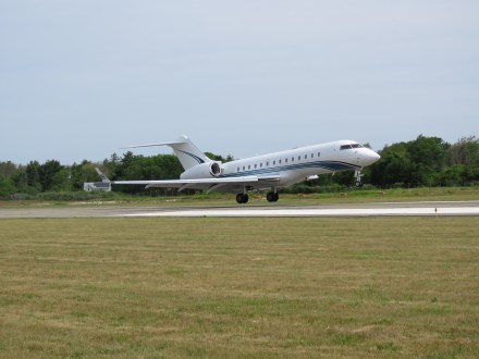 A Global Express landing, my vantage point just outside the runway safety area was just slightly beyond the touchdown zone (large white areas on the runway).