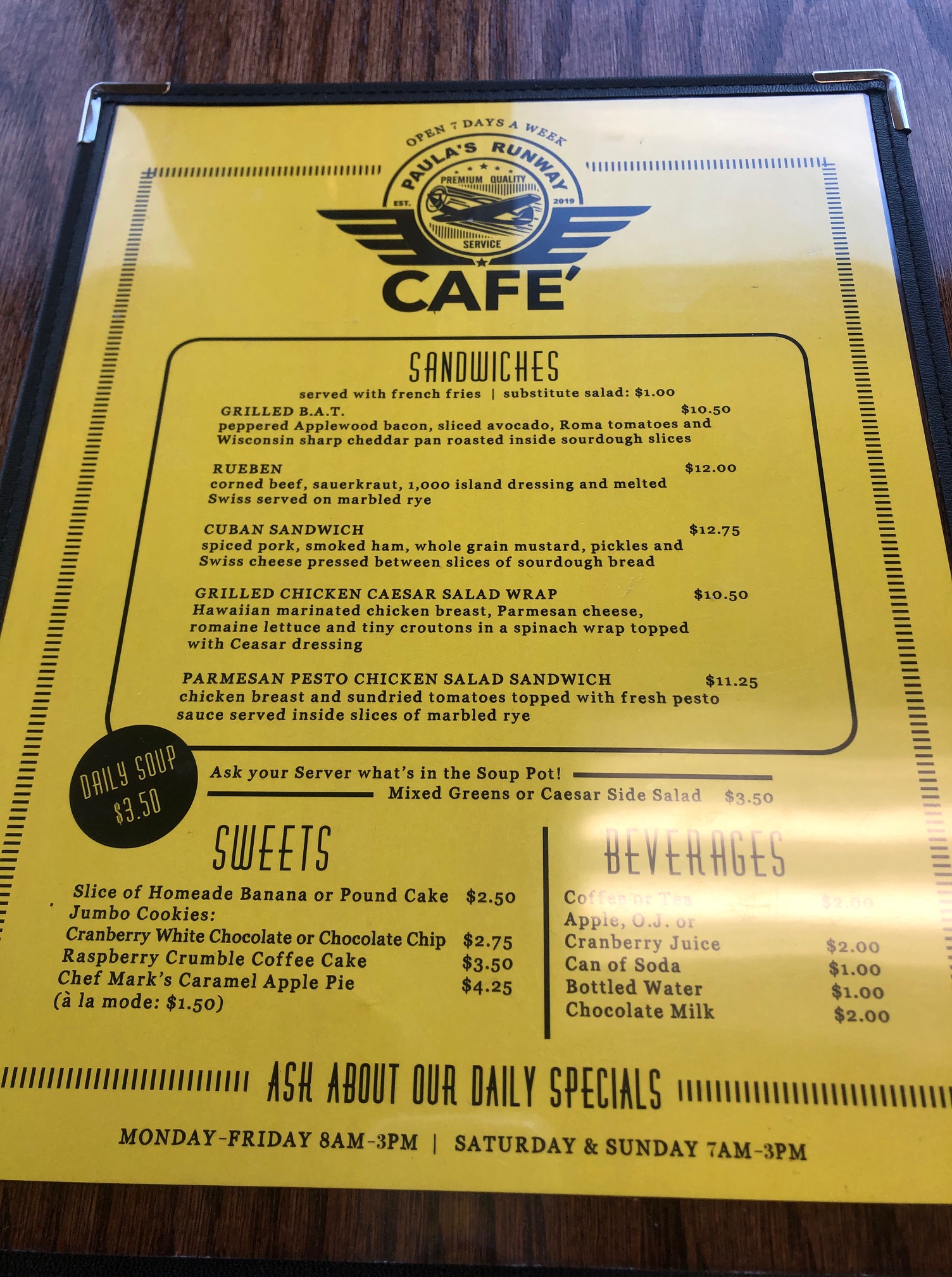 IMG_6134 Published December 15, 2019 at 1504 × 2016 in Flying for Food: Paula’s Runway Cafe at KPOU Dutchess County or Poughkeepsie or Hudson Valley Regional… ← Previous Next →