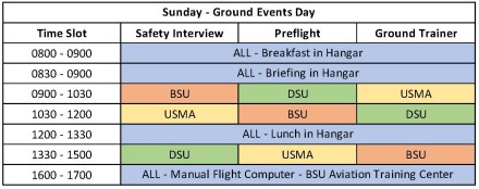 10/25/19 0130 – Participants please see our revised schedule, revision “C” which is now current. Take note that the Aircraft Recognition Event will be held this (Friday) evening.
