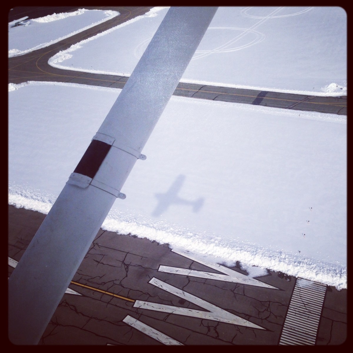 takeoff photo Published February 9, 2014 at 1280 × 1280 At a “safe altitude” after takeoff on Runway 32 @ 1B9, the noise abatement turn makes for a cool picture opportunity when the sun is high in the midday sky! (2/9)